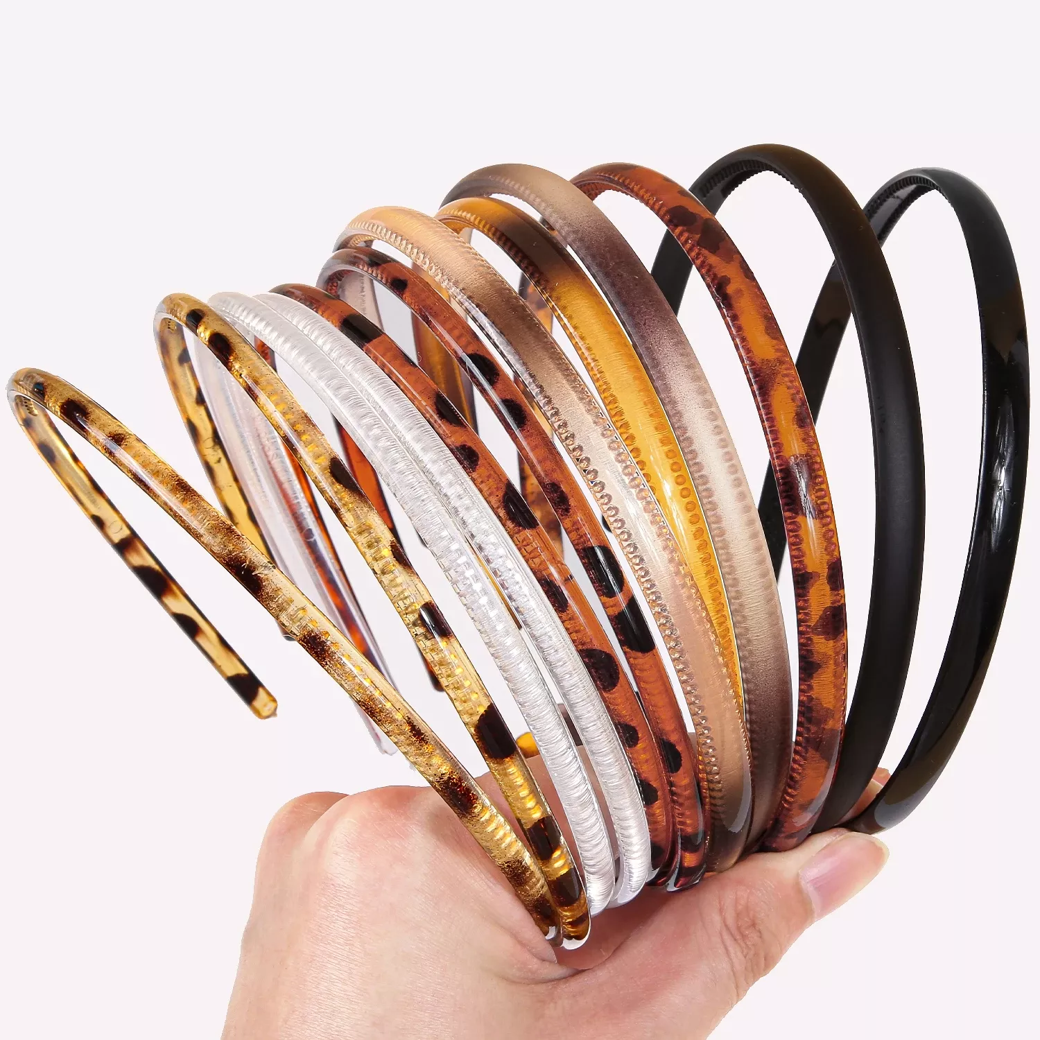 Elevate your hair game with this chic 12-piece set of thin, non-slip leopard print headbands. Designed for women, teens, and girls who love a pop of personality in their look, these plastic headbands are your go-to accessory for effortless style, no matter the occasion. Whether you’re heading to school, work, a casual day out, or a fun gathering, these fashion-forward headbands add just the right touch of charm and flair. Their lightweight, durable design ensures they stay in place without causing discomfort, even after hours of wear.