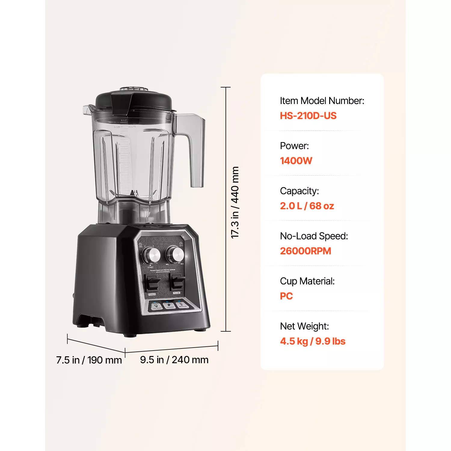 - Fast and Powerful: 1400W motor and 26,000 RPM speed crush ice and blend fruits in seconds.