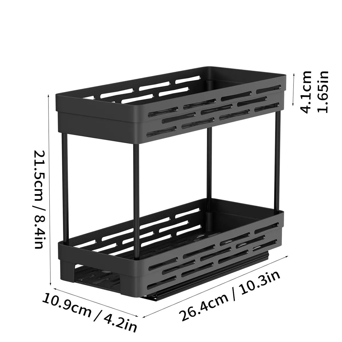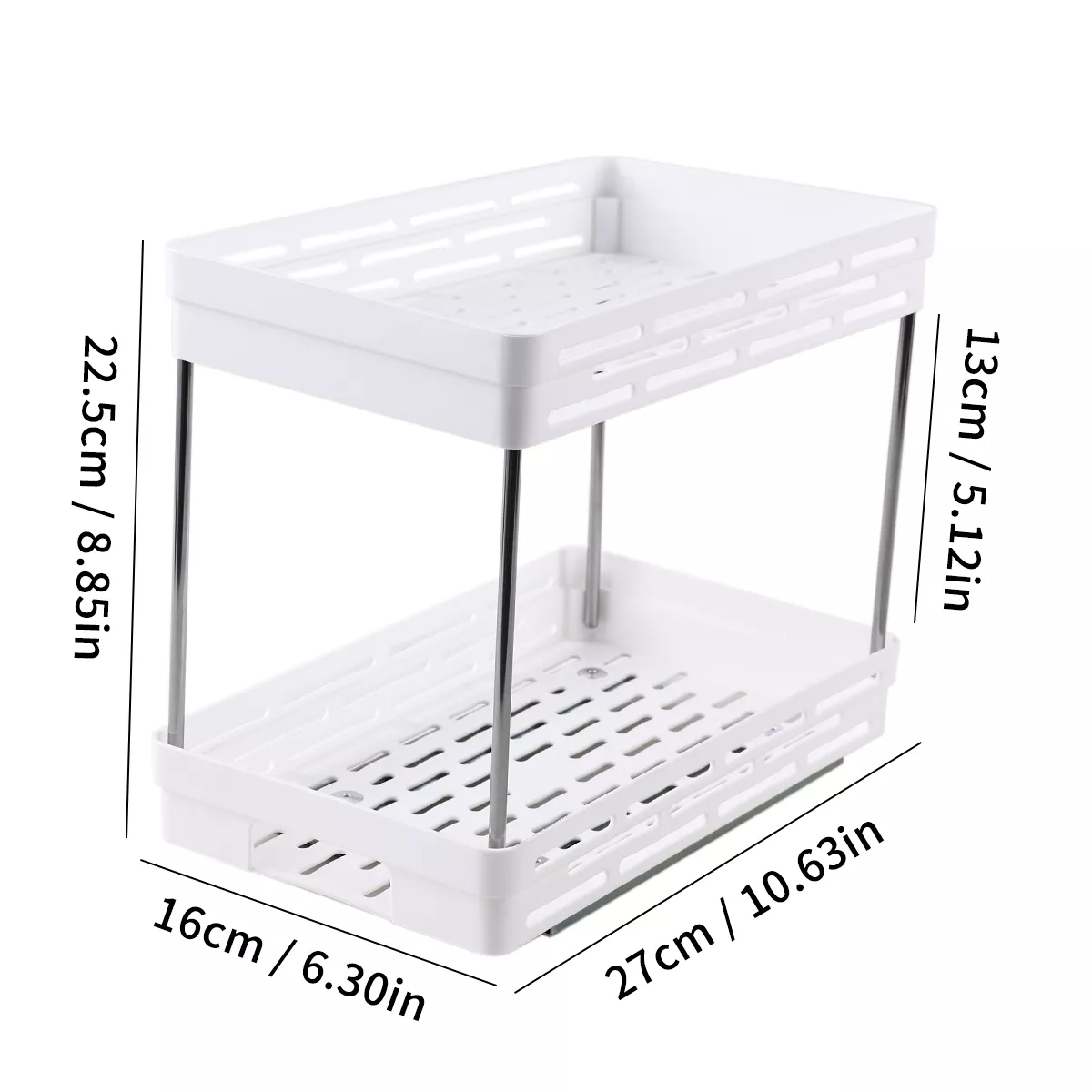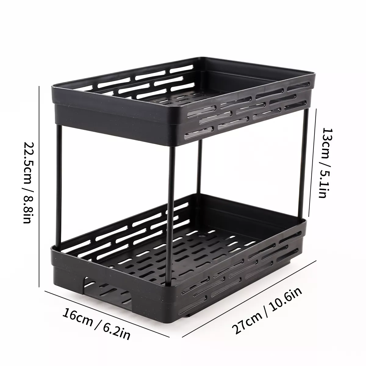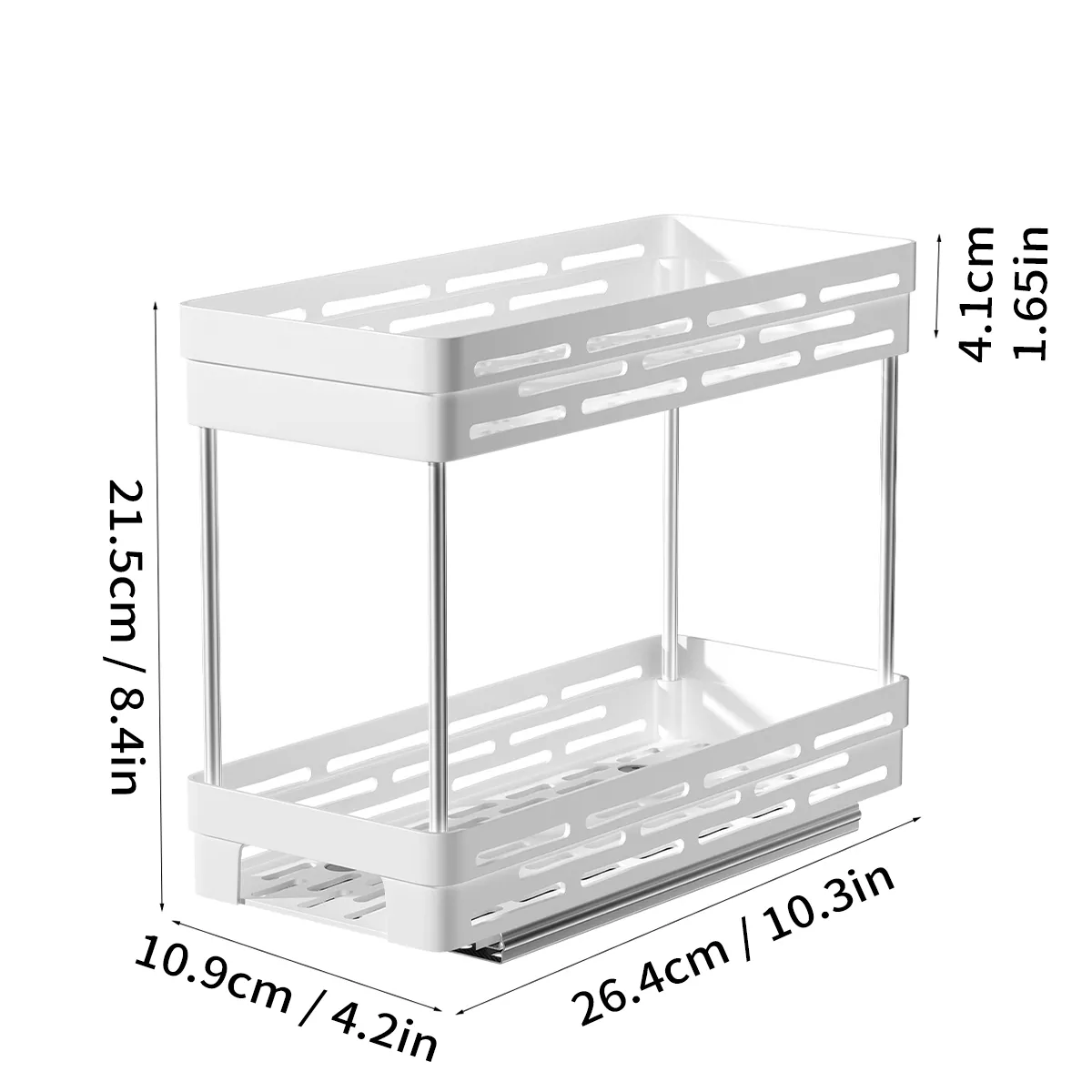Transform your kitchen cabinets with this 2-tier pull-out storage rack designed to keep your space organized and clutter-free. With its large capacity and smooth sliding mechanism, this organizer drawer makes it effortless to store and access spice jars, condiments, and other kitchen essentials. Say goodbye to digging through messy shelves — everything you need will be right at your fingertips.