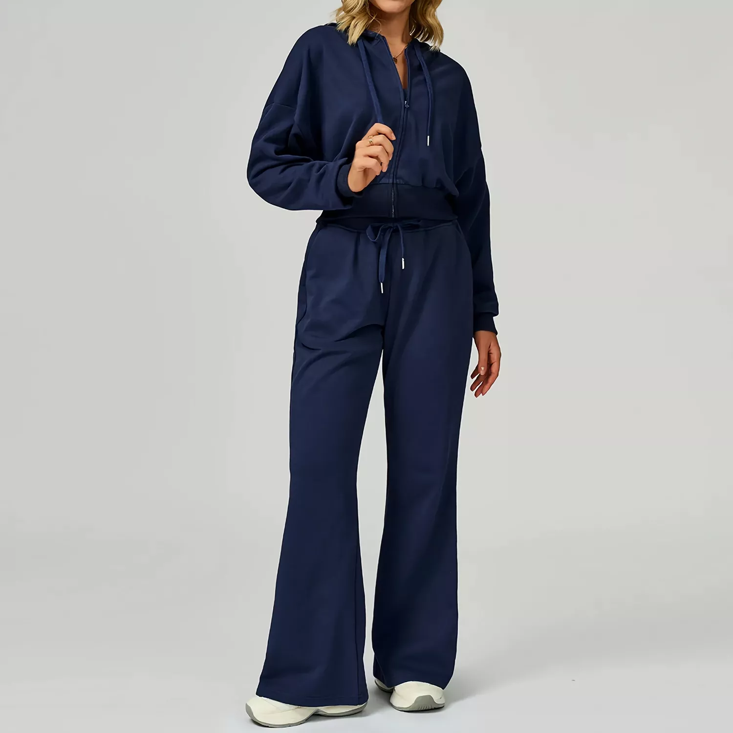 This isn’t just another workout set—it’s a blend of style, performance, and comfort. The fabric feels soft against the skin while giving you the warmth you need on chilly days. Unlike bulky sweatshirts, the breathable knit construction ensures you stay comfortable through movement. Whether you’re breaking a sweat or lounging at home, this set adapts to your lifestyle. Plus, with its clean and simple solid pattern, it’s easy to dress up or down depending on your mood.