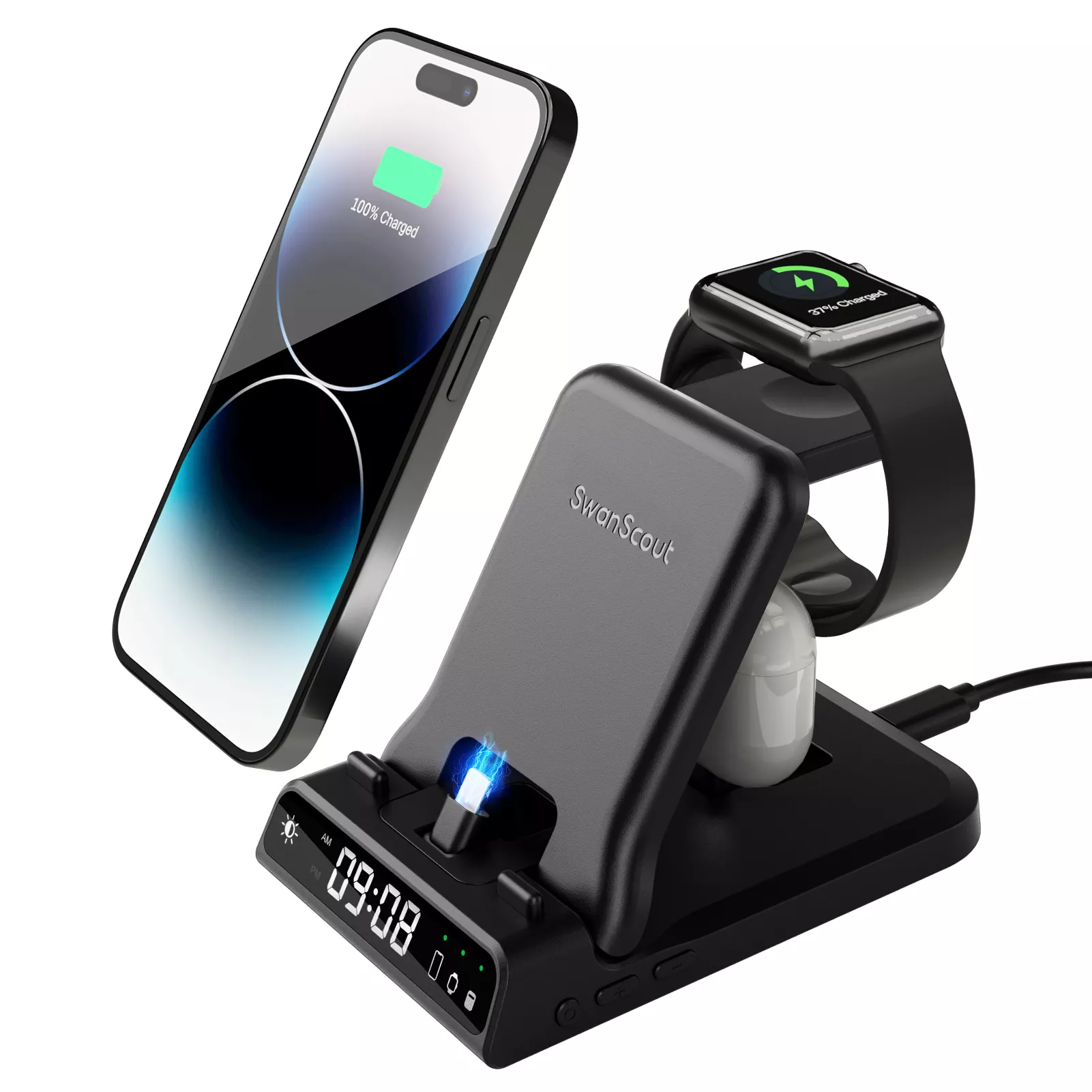 • 3-in-1 Functionality: Charges iPhone, Apple Watch, and AirPods simultaneously