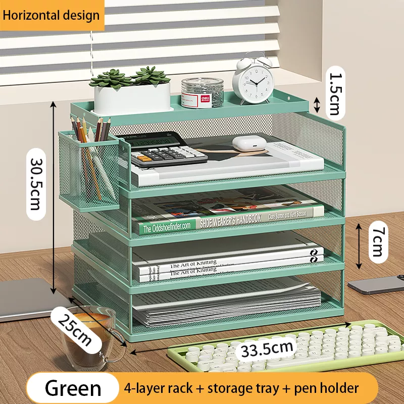 With four stackable trays and a built-in pen holder, this organizer is perfect for keeping letter-size paper, folders, notebooks, and small accessories right at your fingertips. Made of durable metal with a powder-coated finish, it’s as strong as it is stylish—built to withstand daily use while keeping your desktop neat and tidy.