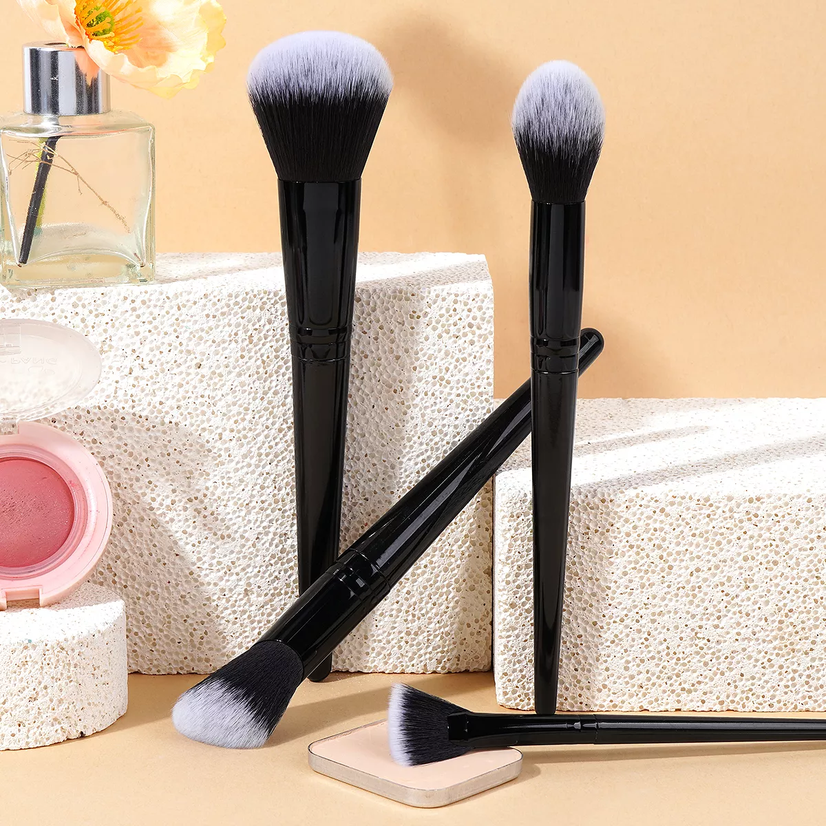 - Soft synthetic hair brushes – gentle on skin, perfect for even application.