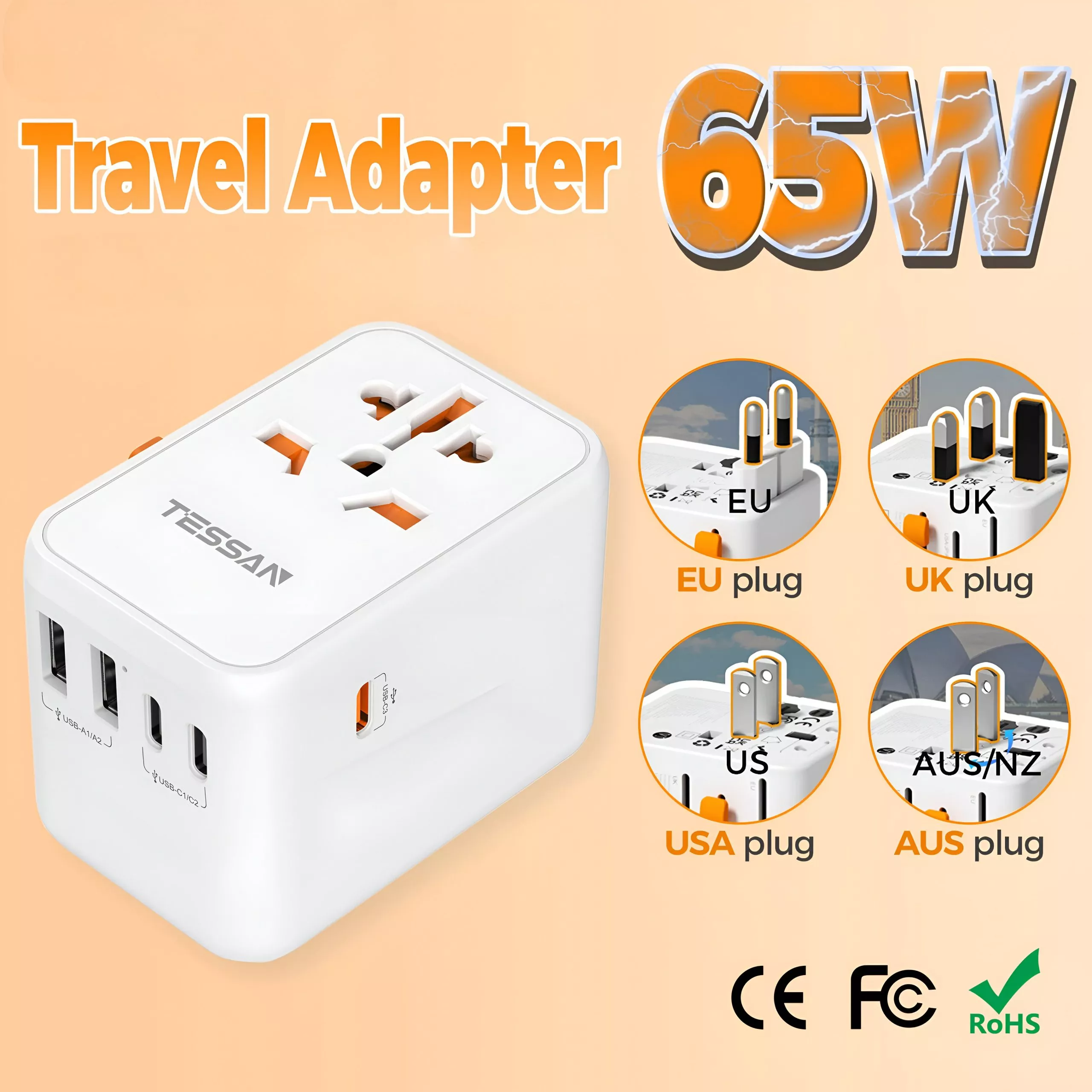 Stay charged no matter where your journey takes you. This 65W GaN international travel adapter combines fast charging performance with worldwide compatibility, making it the perfect companion for globetrotters, business travelers, and digital nomads. With advanced GaN technology, it delivers powerful, efficient, and cooler charging for all your essential devices.