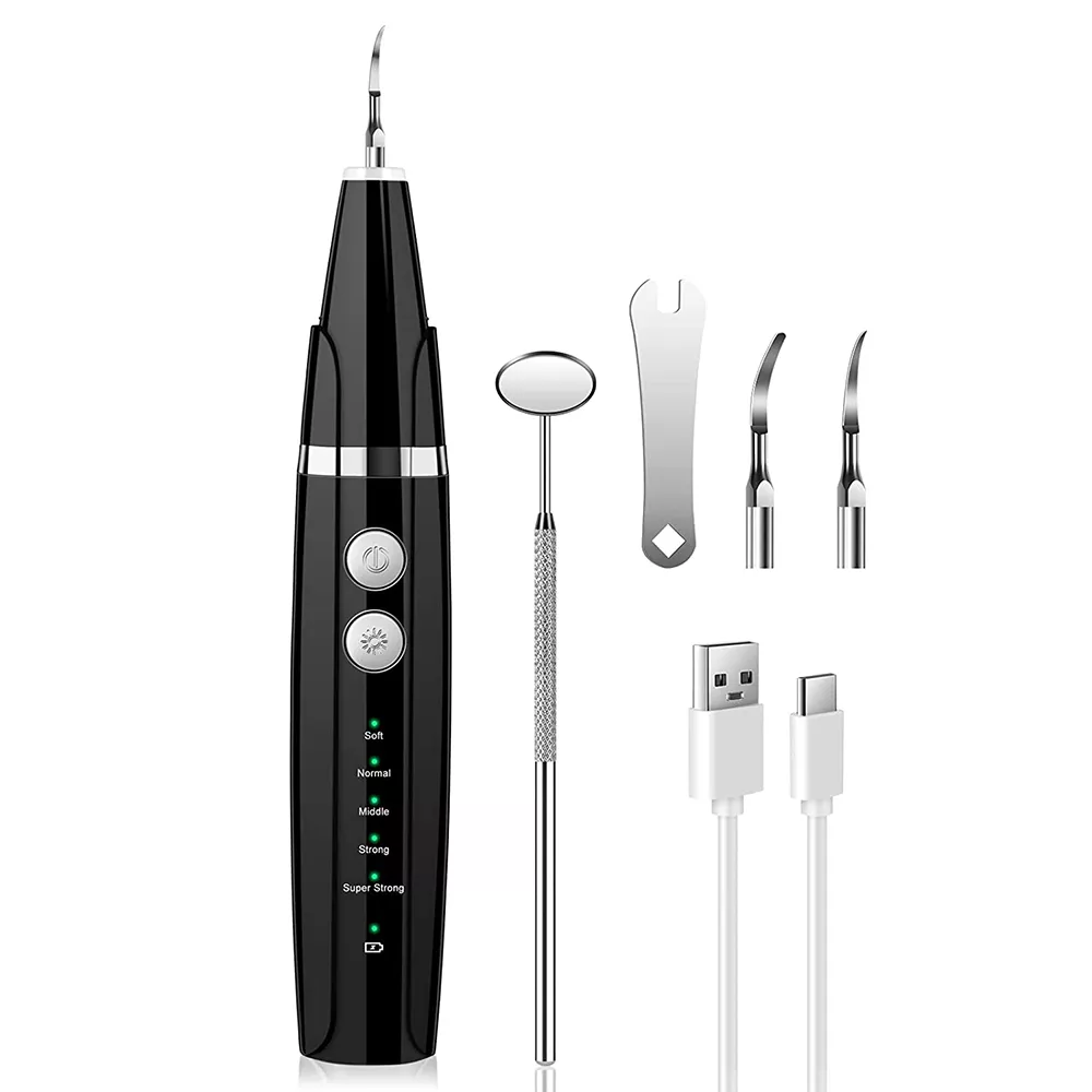 Perfect for use between dental checkups, this teeth cleaning tool helps maintain your oral hygiene while saving you time and money. Whether you need to remove surface stains or target stubborn tartar buildup, this ultrasonic scaler adapts to your needs with five adjustable modes and two interchangeable stainless-steel cleaning heads.