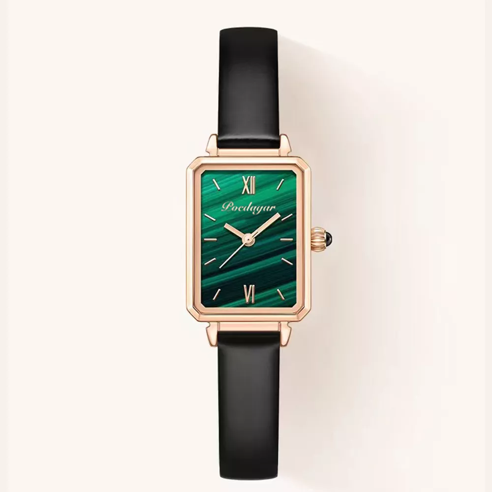 Elegant Green Square Leather Women’s Watch – Luxury Waterproof Quartz Timepiece