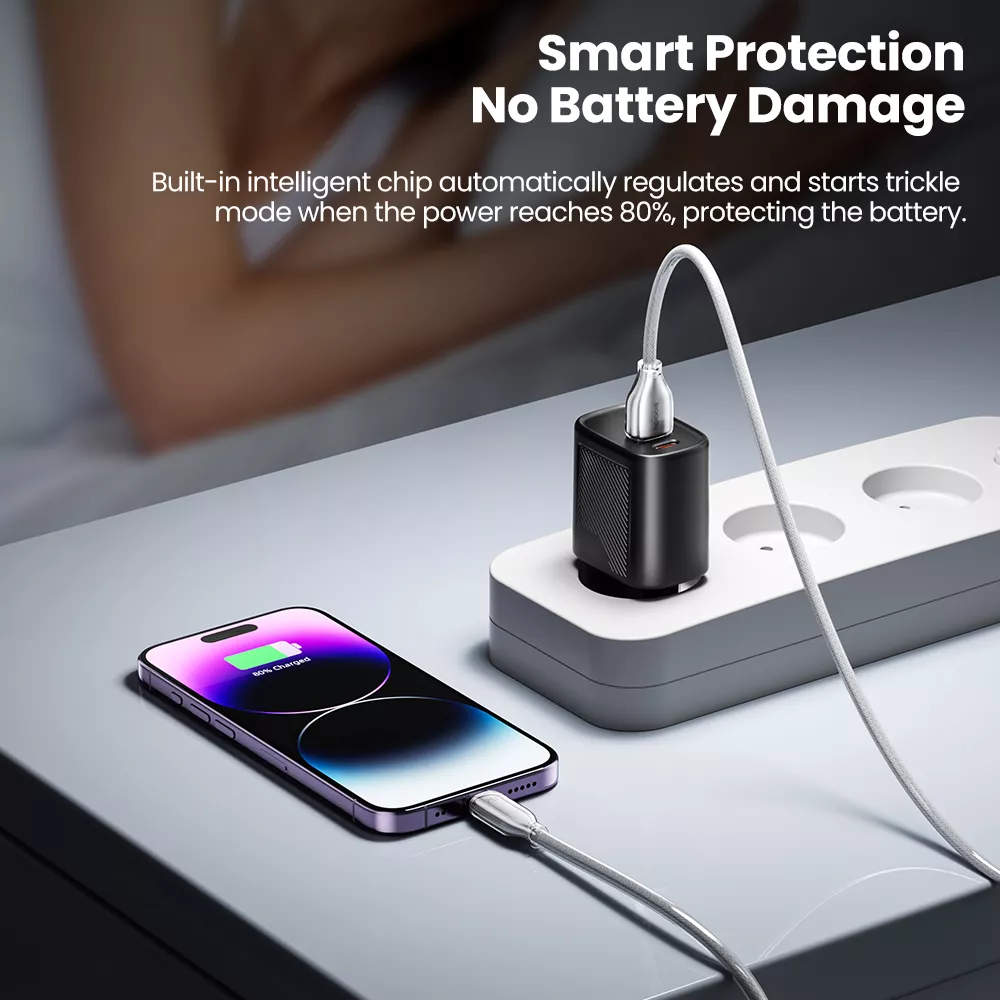 This cable combines a zinc alloy shell with a thick tinned copper core and a high-density braided exterior. The result is a charging cable that resists bending, pulling, and everyday wear and tear. The zinc alloy adds a sleek, modern touch while being oxidation-resistant and durable, ensuring a secure connection that won’t loosen over time. Perfect for daily use, this cable keeps your devices safe and charged efficiently.
