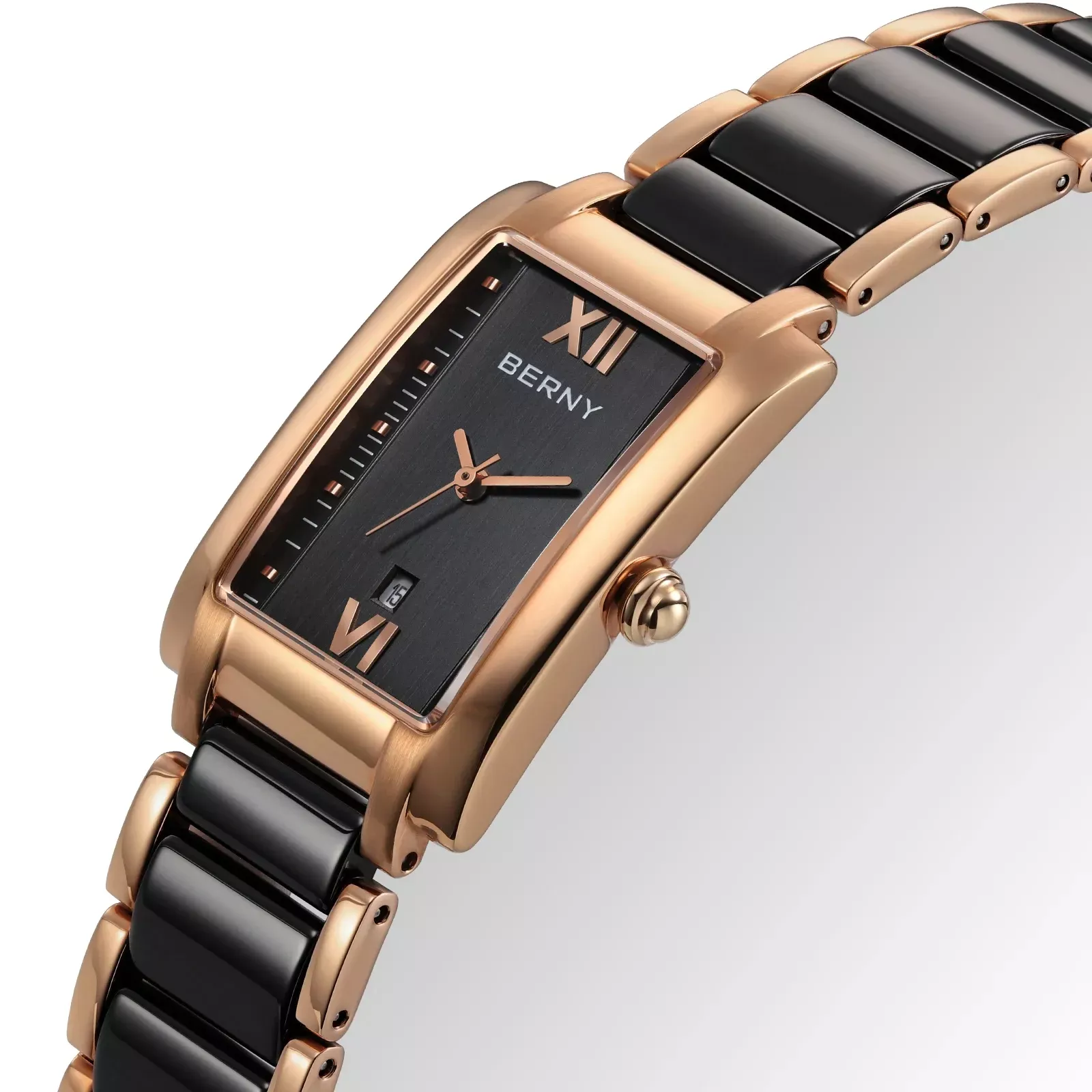 Luxury Women’s Ceramic Rectangle Watch with Calendar & Waterproof Design