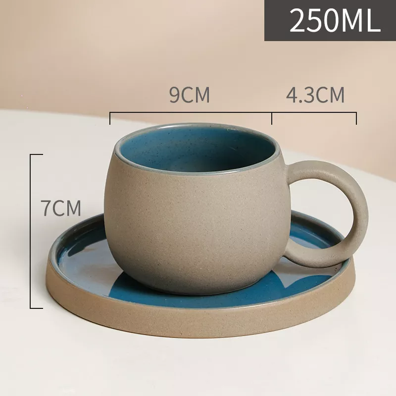 Each mug is made from high-quality coarse pottery ceramic with a slightly textured finish, offering a grounded, organic feel in your hands. The matching saucer is designed for style and functionality—perfect for catching drips, holding a spoon, or resting a small treat. Ideal for morning coffee, afternoon tea, or weekend breakfasts, this set fits effortlessly into cozy kitchens, modern spaces, or minimalist dining tables.