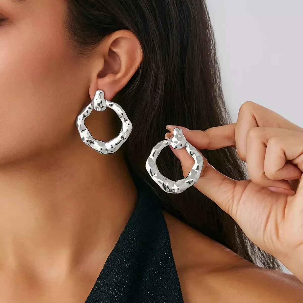 Unlike traditional earrings, these feature a creative irregular design that adds a touch of modern artistry to your look. The soft water-drop inspired pattern is subtle yet eye-catching, making these studs a statement piece you can wear day or night. Whether paired with a casual outfit or a more refined ensemble, they bring just the right amount of chic detail.