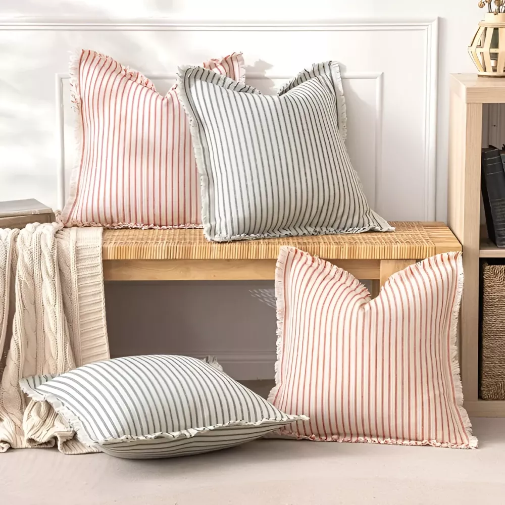 Vintage Striped Cushion Cover with Tassels – Nordic Cotton Linen Pillow Case