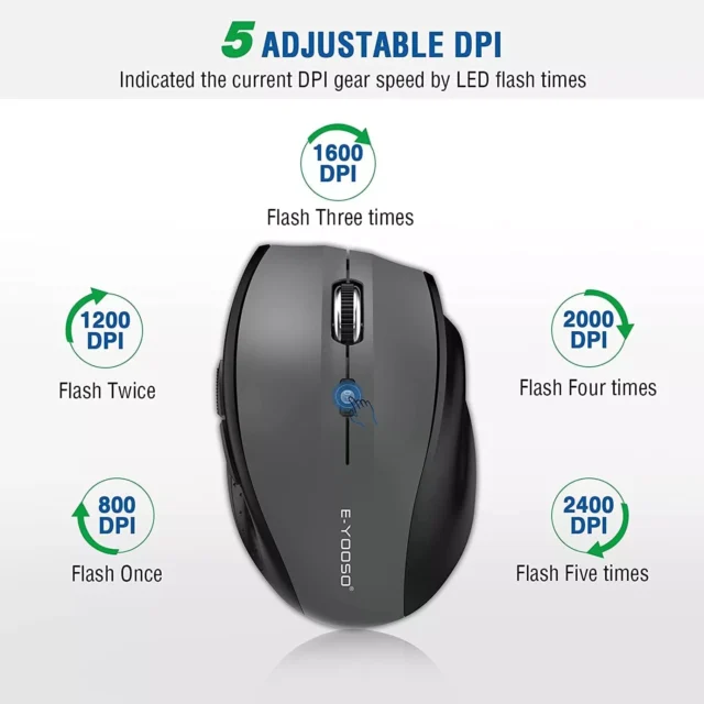 • Boost Your Productivity: Switch between precision and speed with one touch of the DPI button — ideal for designers, gamers, and multitaskers.