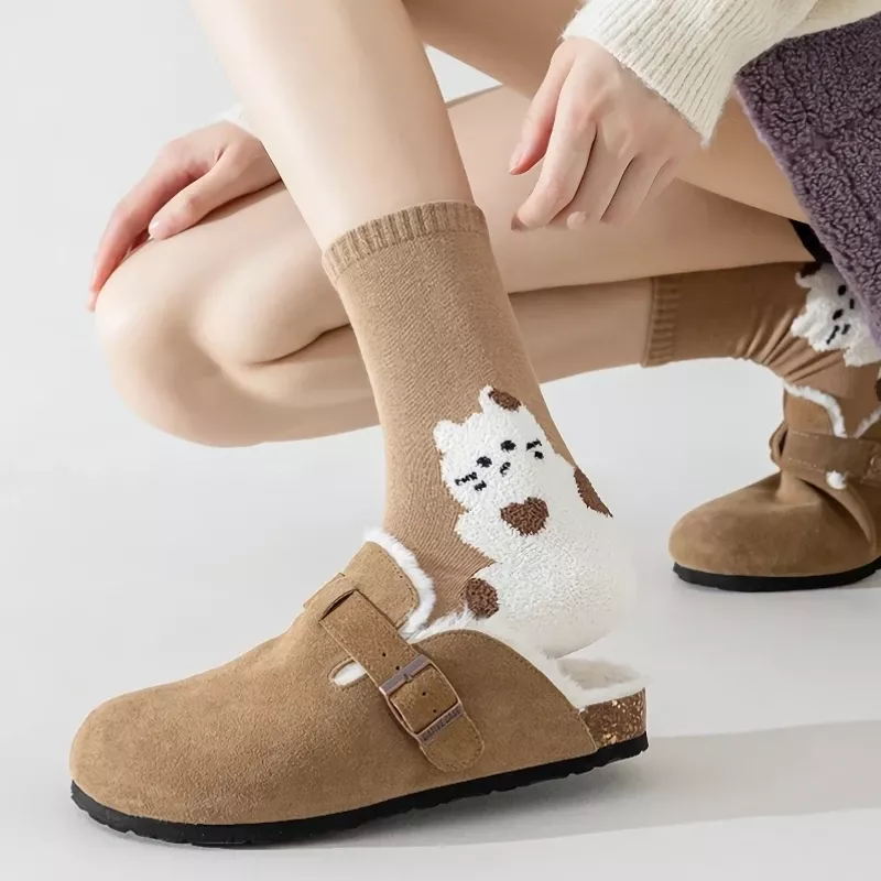 These socks aren’t just functional—they’re fashion with personality. The adorable bear flocking pattern brings a whimsical vibe that brightens up your look, while the smooth knit ensures all-day comfort. Unlike plain socks, these offer a unique blend of charm and practicality, making them a delightful addition to your wardrobe or a thoughtful gift for someone who loves cute and cozy accessories.